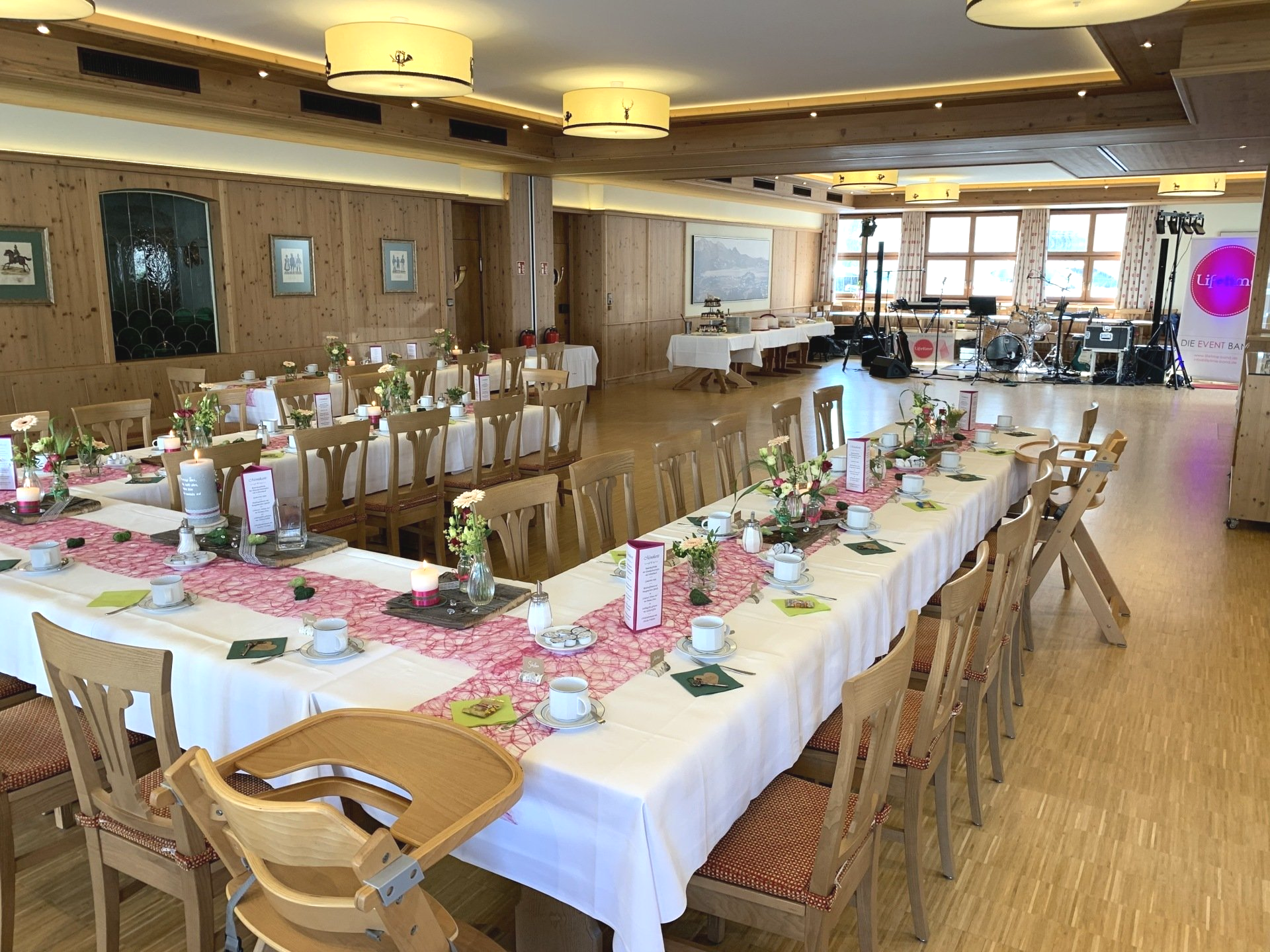 Unser geräumiger Saal ist ideal für Ihre Familienfeier, Hochzeit, Vereinsveranstaltung, Betriebsfeier oder Tagung